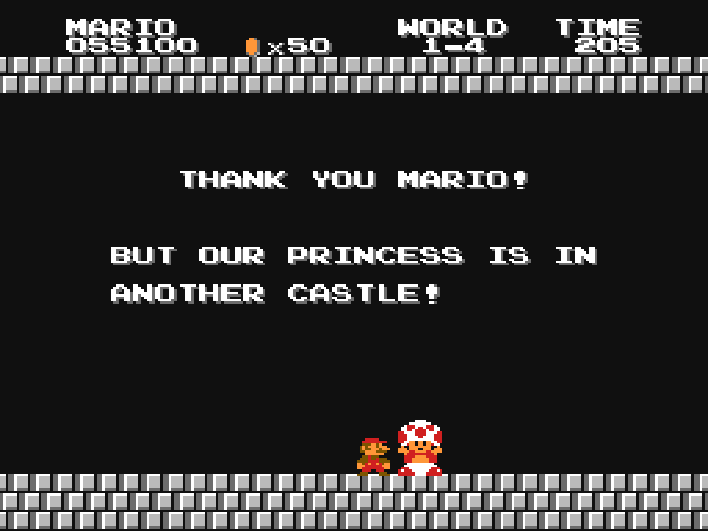 "Thank you Mario! But our Princess is in another castle!"